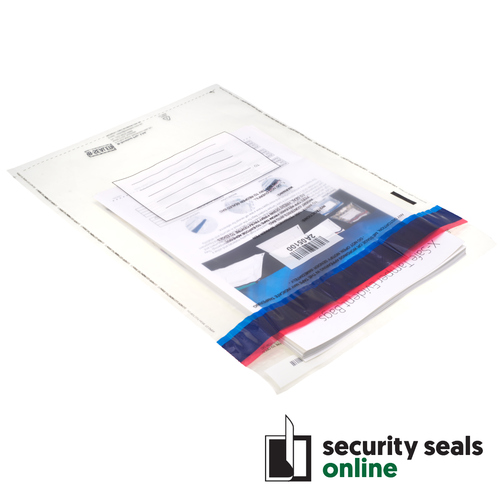 | Applications | Transporting cash deposits between retail stores and banks Evidence handling and storage for law enforcement or forensic use Securing confidential documents and contracts during transit Internal mail and secure inter-office correspondence Medical sample and pathology specimen transportation Pharmaceutical logistics, including controlled substances Courier services requiring tamper-evident packaging Valuable item transfers such as jewellery, electronics, or data media Audit and compliance processes requiring secure, traceable packaging Elections - safe transport of ballots and voting materials |